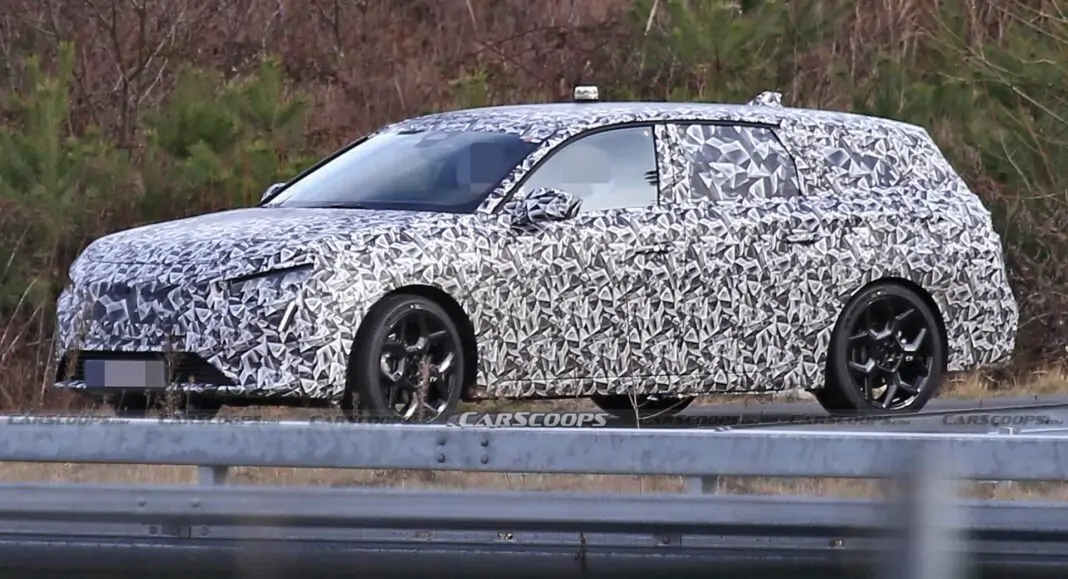 Essais espionnés en Europe, aux côtés de son frère plus petit, la 308 SW reflétera le design de la nouvelle berline jusqu’aux montants B, ce qui signifie un nez situé plus bas qu’avant et une calandre plus subtile qui incorporera le lion nouvellement annoncé de la marque. logo. Plus en arrière, on voit que les vitres arrière ont une forme plus carrée et que le becquet de toit est plus discret.